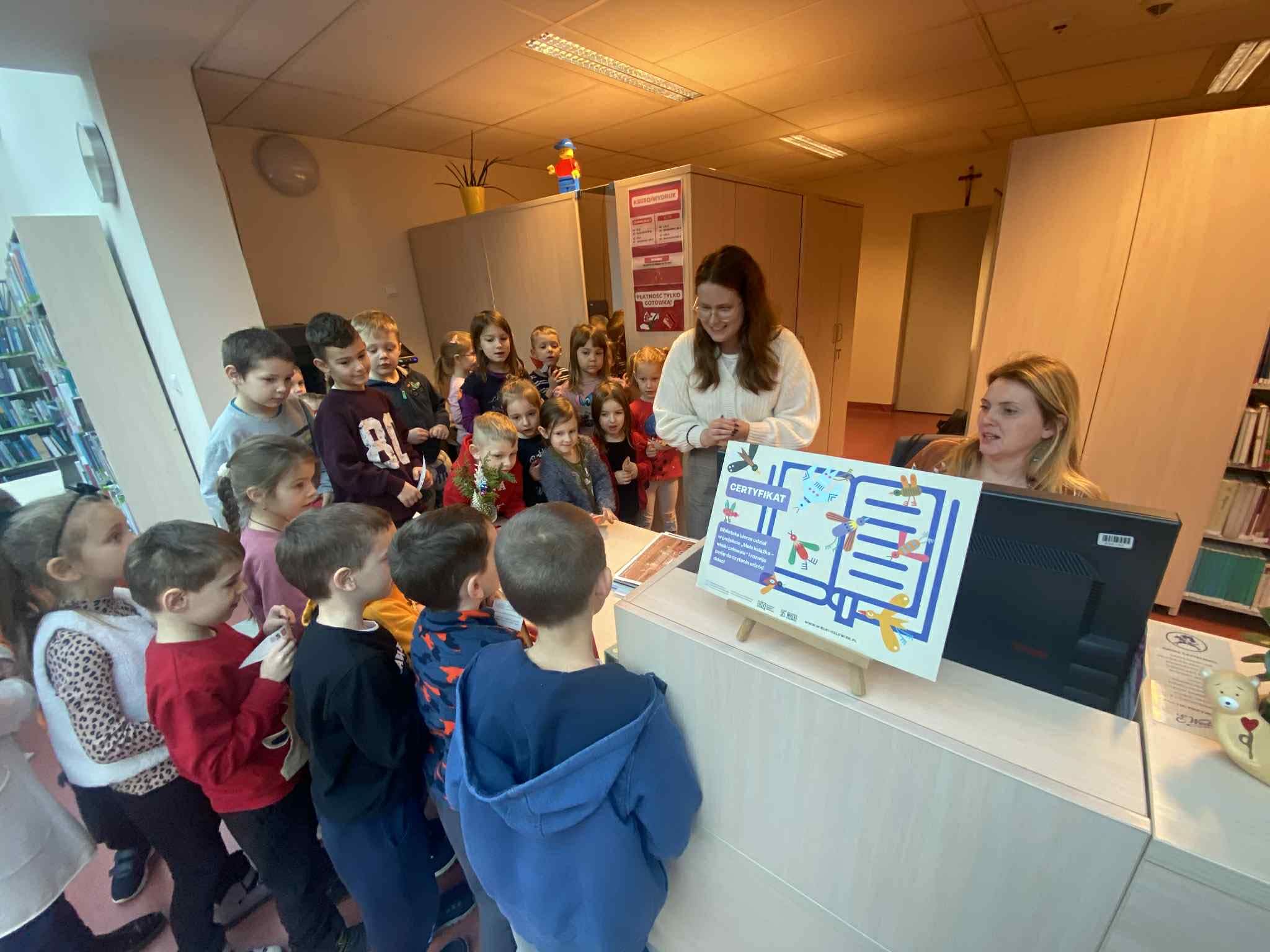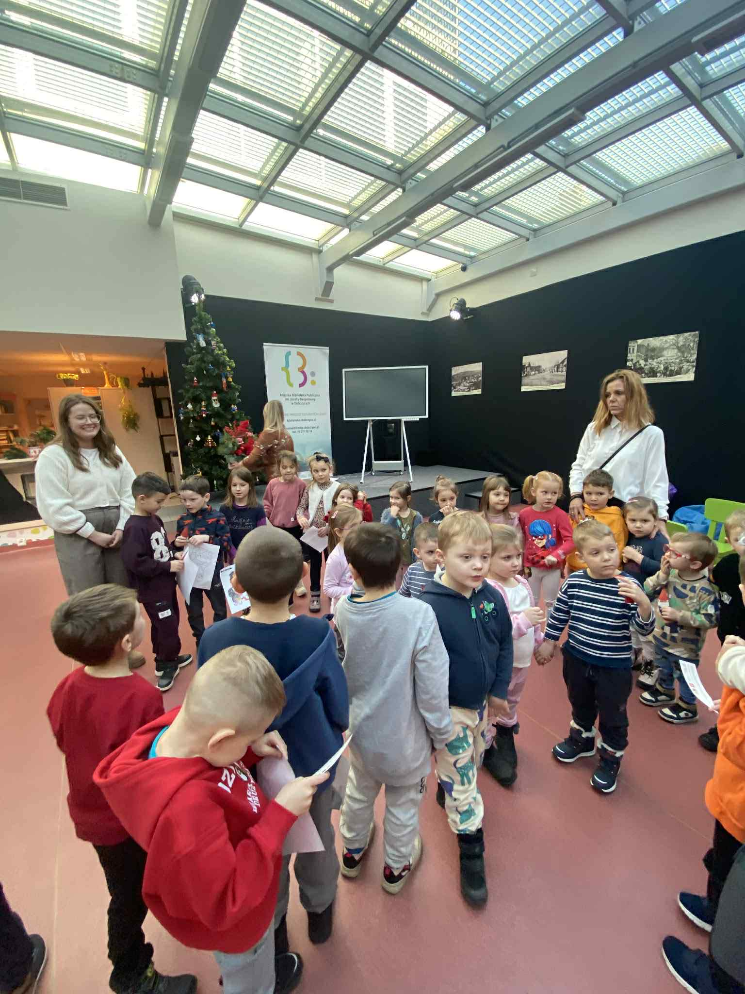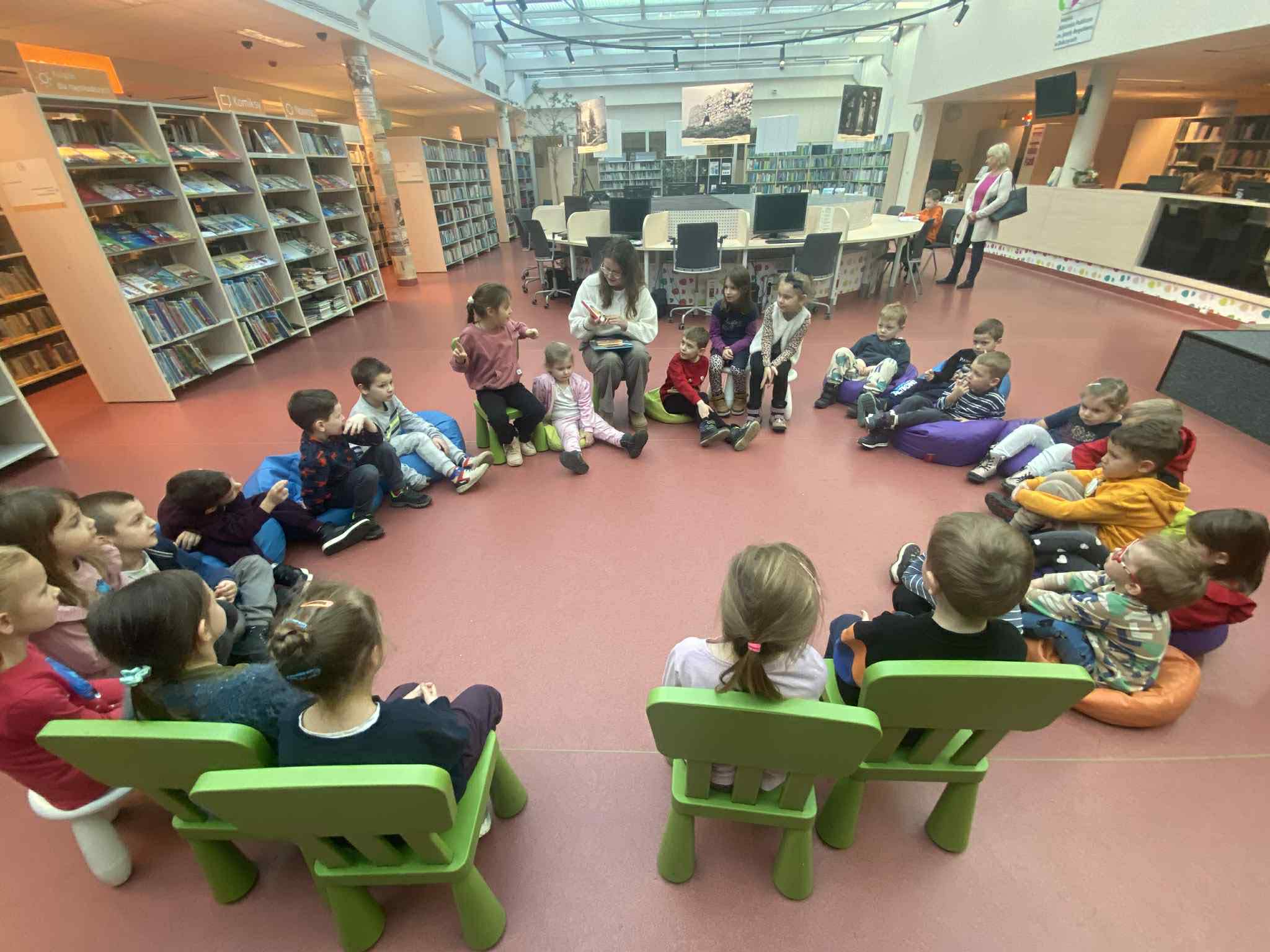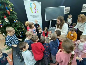 Dnia 18 grudnia dwa oddziały przedszkolne z naszej szkoły odwiedziły Miejską Publiczną Bibliotekę w Dobczycach. Celem wizyty było zapoznanie dzieci z funkcjonowaniem biblioteki oraz rozwijanie zainteresowań czytelniczych już od najmłodszych lat.