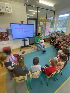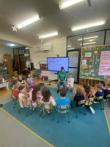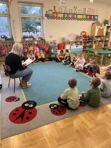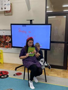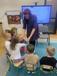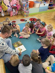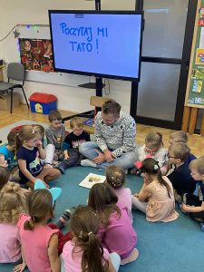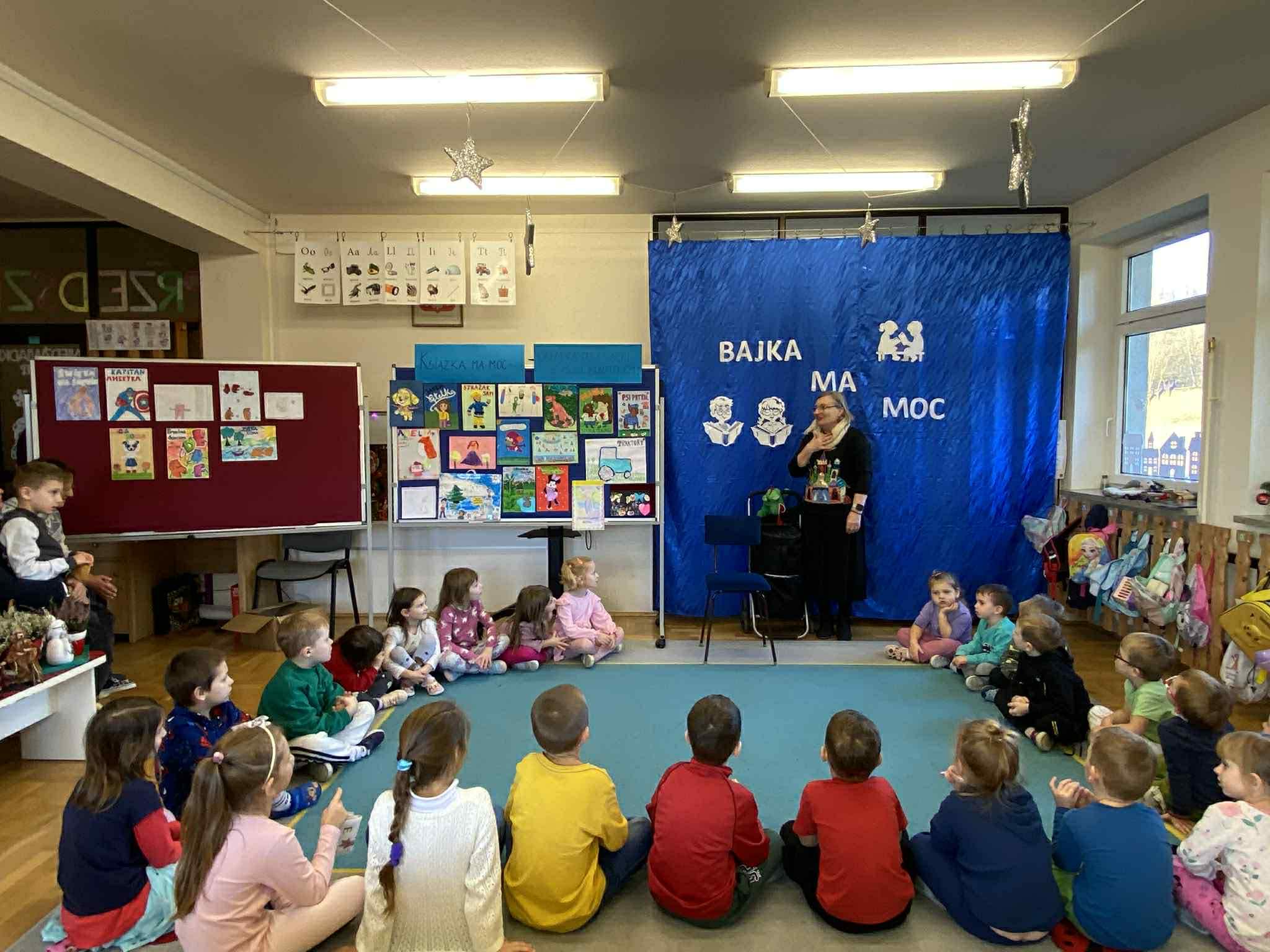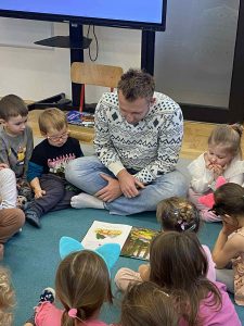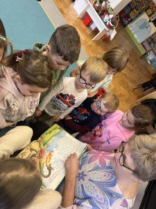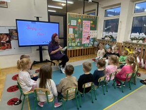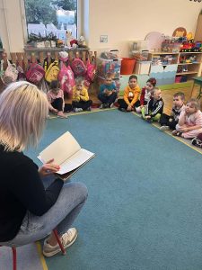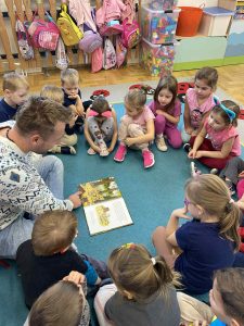Kolejnym ważnym elementem projektu było spotkanie z pisarką, które dostarczyło dzieciom wielu pozytywnych emocji i zainspirowało je do odkrywania świata literatury. Przedszkolaki uczestniczyły również w wyjeździe do Miejskiej Biblioteki w Dobczycach, gdzie mogły zobaczyć, jak funkcjonuje biblioteka publiczna oraz wziąć udział w zajęciach czytelniczych. Zwieńczeniem działań był projekt okładki książki pt. „Bajka ma moc”, który pozwolił dzieciom wykazać się kreatywnością i twórczym myśleniem.
