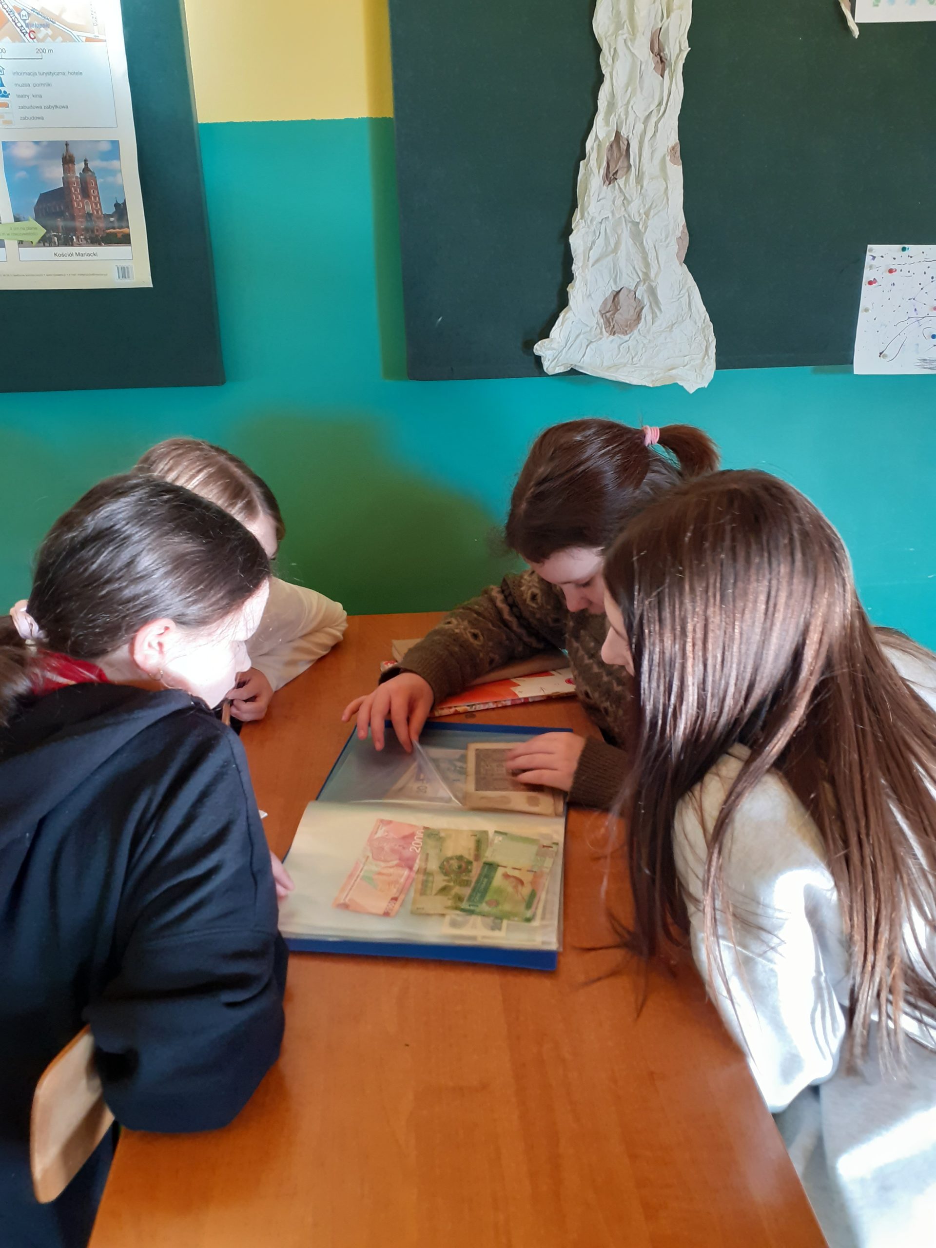 Następnie uczniowie obejrzeli kolekcję polskich monet i banknotów pochodzących z dawnych czasów – również z okresu II wojny światowej, a także pieniądze obowiązujące w czasach PRL. Dowiedzieli się na temat inflacji oraz denominacji, która miała miejsce w 1995 roku. Ciekawostką okazały się żetony telefoniczne oraz bilet MPK – opiewający na kwotę 4000 zł. Niezwykłym doświadczeniem było obejrzenie środków płatniczych z czasów zaborów. Niektóre z nich zdumiewały swymi wymiarami.