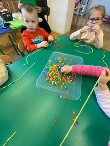W minionym tygodniu w naszym oddziale przedszkolnym Niedźwiadki królowała matematyka. Dzieci z zaangażowaniem przeliczały zbiory, rozwijając umiejętność liczenia i porównywania ilości. Samodzielnie wykonały liczydło, co pozwoliło im lepiej zrozumieć zasadę dodawania i odejmowania. Dużo radości sprawiły im gry planszowe, które nie tylko uczyły logicznego myślenia, ale także wspierały współpracę i zdrową rywalizację. Tworzyły wspólnie beczkę pomysłów. Podczas zajęć dzieci układały puzzle i rymy, ćwicząc przy tym spostrzegawczość i zdolności językowe. Wielką atrakcją okazało się mierzenie siebie nawzajem oraz różnych przedmiotów, co wzbudziło ciekawość i zainteresowanie światem miar i jednostek. Przedszkolaki miały także okazję uczestniczyć w innych matematycznych aktywnościach, które rozwijały ich kreatywność i umiejętności logicznego myślenia. To był tydzień pełen odkryć i radości z nauki!