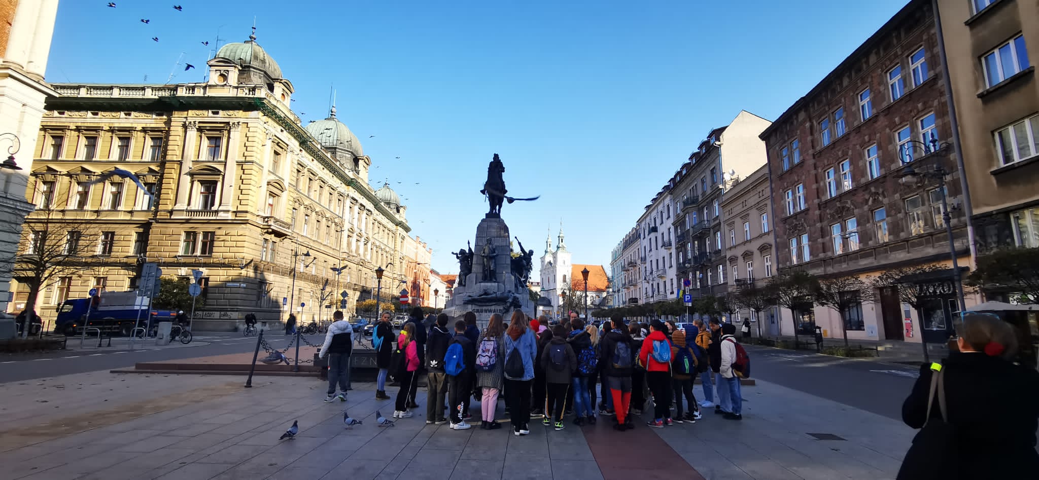 W towarzystwie dobrego humoru, w scenerii złotej polskiej jesieni uczniowie klas IV, V i VI z wychowawcami pod opieką Pani Przewodnik wyruszyli spod Pomnika Grunwaldzkiego na spacer po Krakowskim Rynku.