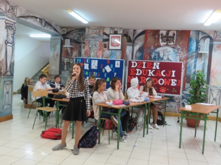 Magdalena Szeląg-Kałuska z uczniami klasy VIII