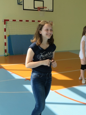 Magdalena Szeląg-Kałuska z uczniami klasy VIII