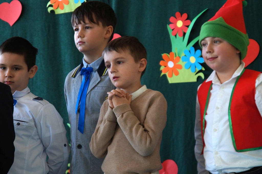 Barbara Szlachta-Kocwa z uczniami klasy VII