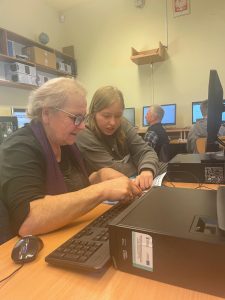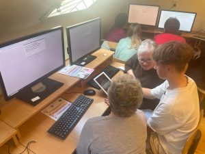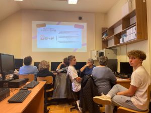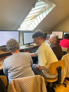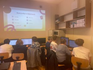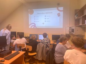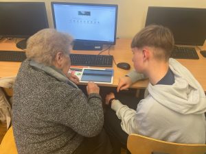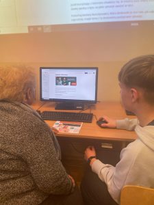 W naszej szkole zrealizowaliśmy wyjątkowy projekt „Szkoła Międzypokoleniowa”, który miał na celu zbliżenie pokoleń i pokazanie, że nauka to proces, który trwa całe życie. W ramach projektu udało nam się stworzyć przestrzeń, w której uczniowie i seniorzy mogli się spotkać, wymienić doświadczeniami i wspólnie spędzić czas przełamując bariery pokoleniowe. Szczególnie wartościowym aspektem projektu było wprowadzenie starszego pokolenia w świat komputerów i Internetu. Nad tym zadaniem czuwała Pani Edyta Pietracha, nauczycielka informatyki i to pod Jej przewodnictwem uczniowie cierpliwie pomagali seniorom stawiać pierwsze kroki w cyfrowym świecie- od podstawowej obsługi komputera i tabletu po wyszukiwanie informacji w Internecie. Rozmawiano również o bezpieczeństwie w sieci, ucząc jak unikać zagrożeń związanych z Phishingiem oraz oszustwami internetowymi, w tym popularną „metodą na wnuczka” . Uczestniczy projektu zobaczyli jak internet może stać się wsparciem w codziennym życiu- od szukania przepisów kulinarnych, przez prognozę pogody , aż przez komunikację z rodziną za pomocą wideorozmów. Nie zabrakło także tematu rozrywki w Internecie- uczestnicy mieli okazję poznać serwisy z muzyką, filmami oraz proste gry logiczne, które mogą rozwijać pamięć i umiejętności strategiczne. Chodź zasady korzystania z nowoczesnych technologii były dla niektórych dużym wyzwaniem to wspólnie udało się pokonać trudności. Projekt „Szkoła Międzypokoleniowa” pokazał, jak wielką wartość ma integracja społeczna w małych miejscowościach i jak dużą rolę może odegrać szkoła w umacnianiu lokalnej wspólnoty. Zajęcia zrealizowane w ramach projektu były ciekawym doświadczeniem zarówno dla młodego jak i starszego pokolenia. Dziękujemy seniorom za tak liczną odpowiedź na nasze zaproszenie.