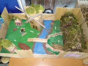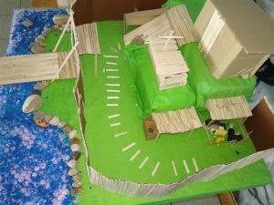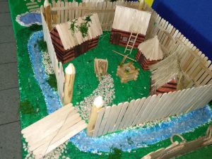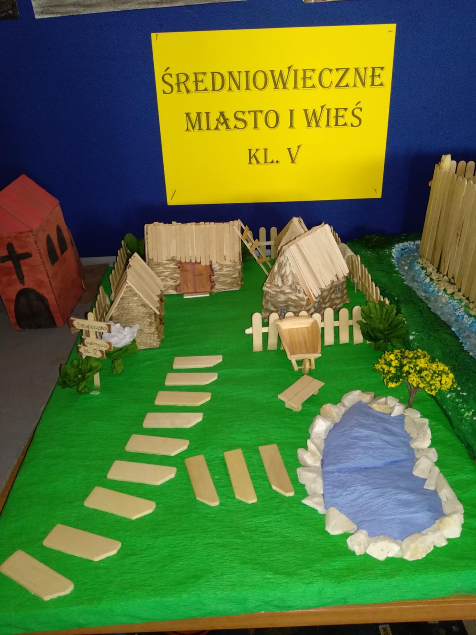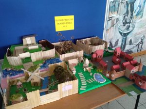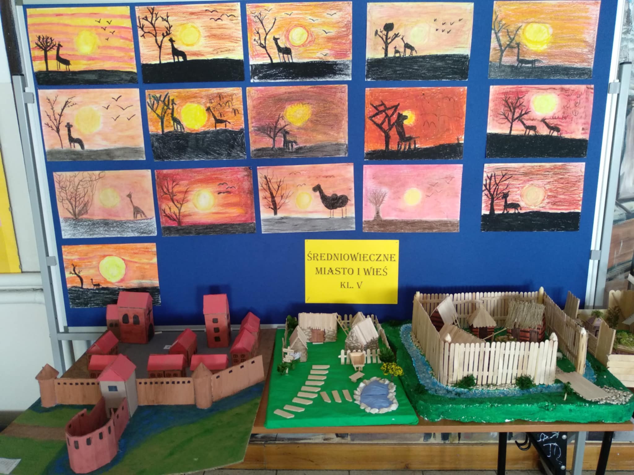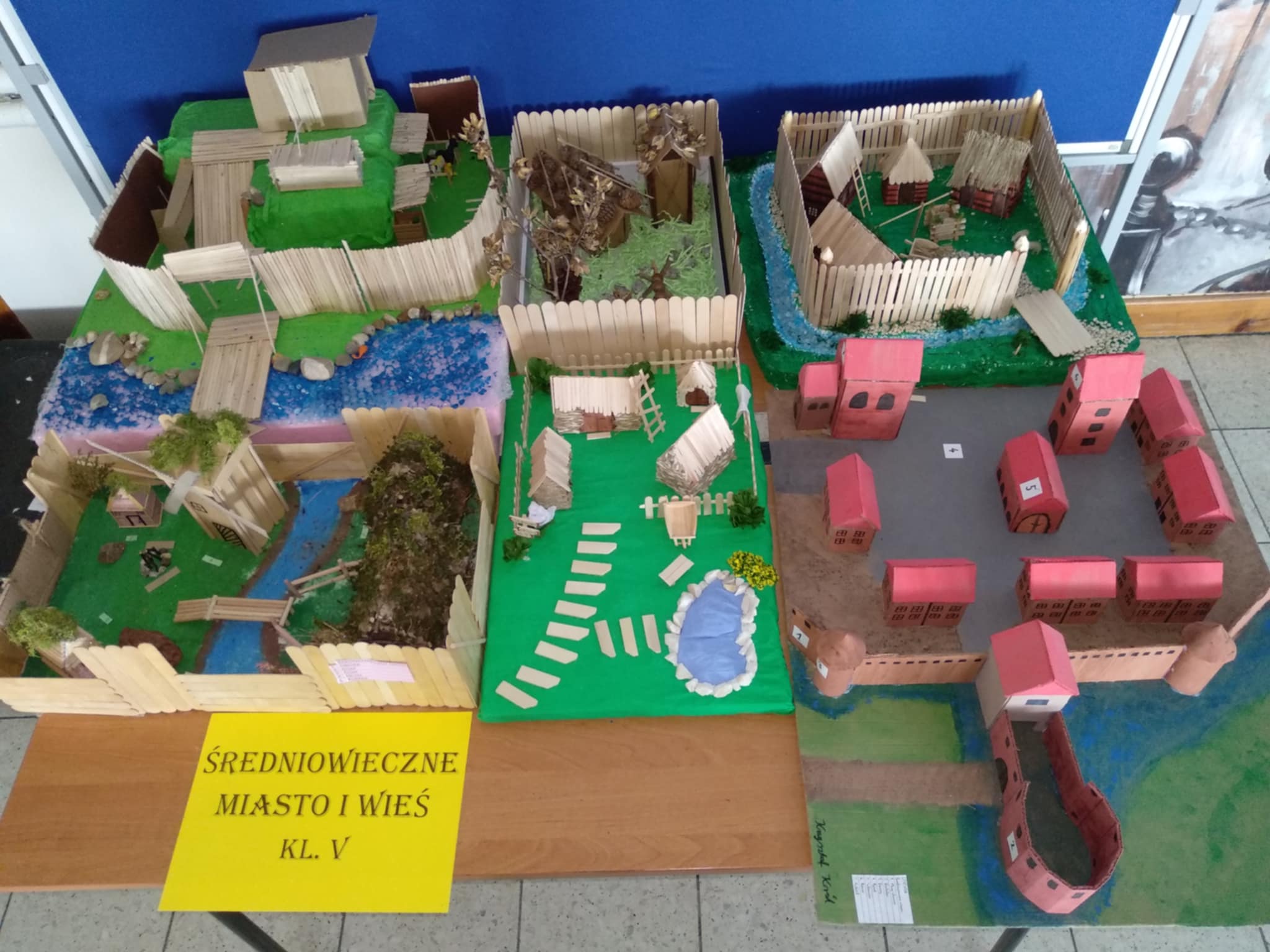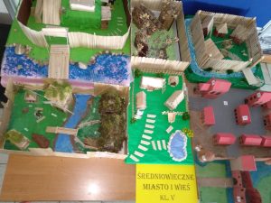 Uczniowie klasy V swoimi pracami przenoszą nas do średniowiecznej zabudowy miast, wiosek i grodów.
